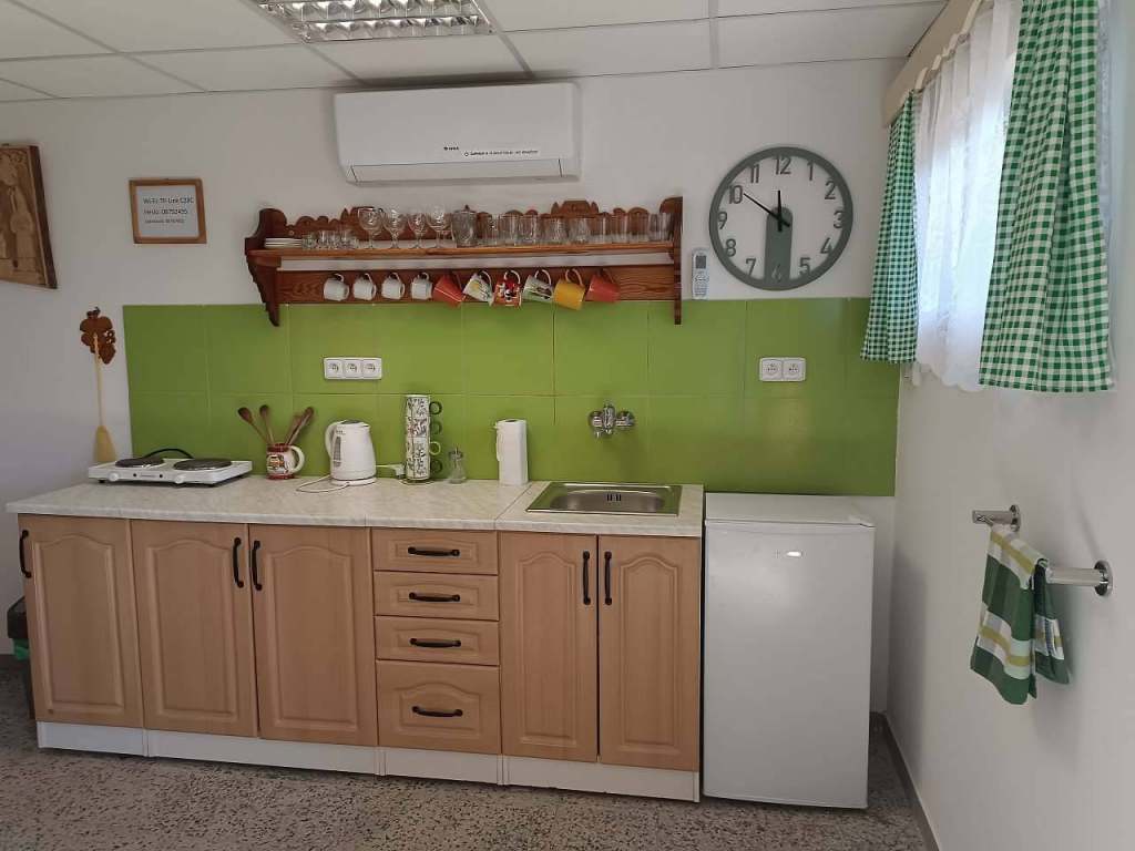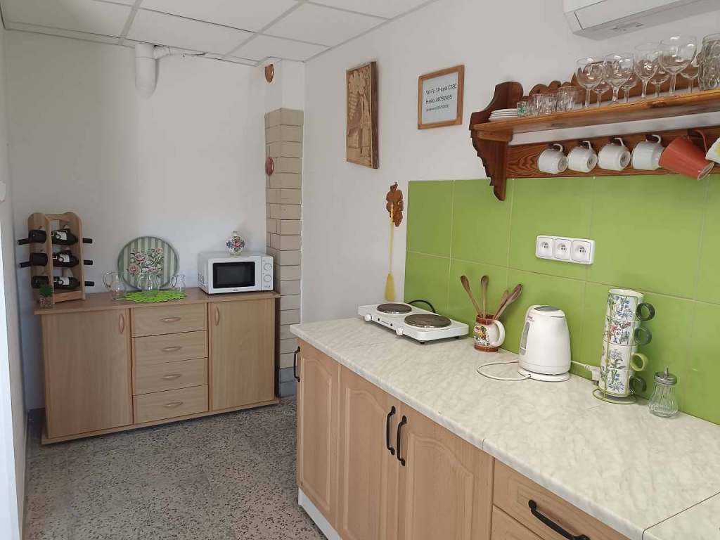 V ubytování je kuchyňka vybavená vařičem, lednicí, rychlovarnou konvicí a mikrovlnkou.