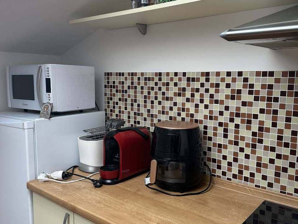 Kompletně vybavená kuchyň a veškeré nádobí, toustovač, kapslový kávovar, airgril, mikrovlnka.