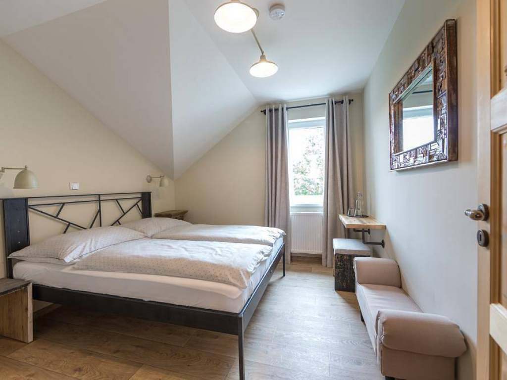 Dvoulůžkový pokoj: Komfortně zařízený dvoulůžkový pokoj s manželskou postelí (160x200) nabízí dostatek prostoru, vlastní moderní koupelnu se sprchovým koutem a toaletou. K dispozici je i malé posezení a internetové Wi - Fi připojení. Pokoj je vybaven velmi pohodlným, vkusným a stylovým nábytkem, který je ideální pro všední lenošení a pohodový spánek. Samozřejmostí je hotelová kosmetika, ručníky i ložní povlečení. V případě zájmu o parkování je všem hostům k dispozici parkování zdarma uvnitř resortu.