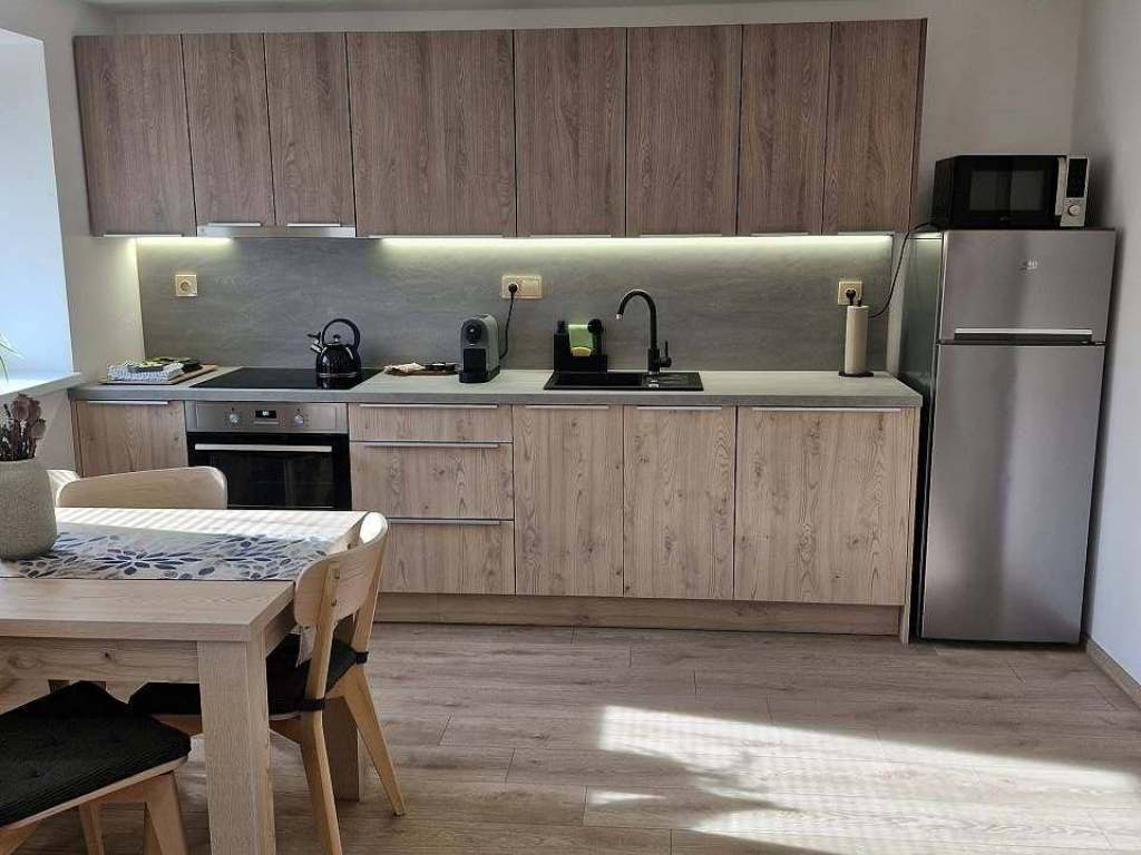 Nabízíme 2 apartmány až pro 5 osob s koupelnou, obývacím pokojem a kuchyňskou linkou.