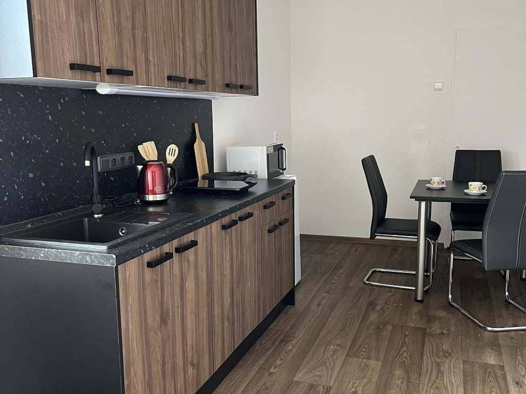 V apartmánu nechybí kompletně zařízená kuchyň s keramickou varnou deskou, mikrovlnnou troubou, lednicí, rychlovarnou konvicí, stolem s židlemi a samozřejmě dostatkem základního kuchyňského nádobí. V objektu je dostupné WiFi připojení.