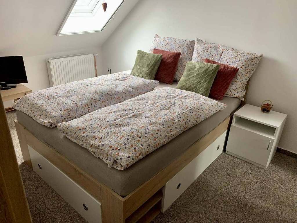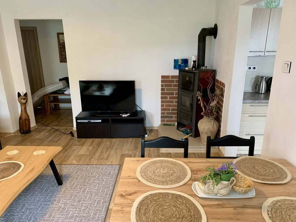 Hledáte místo, kde si skutečně odpočinete? Vítejte v útulném a prostorném podkrovním bytě, který se nachází v klidném domě v malebné obci Mikulovice – Nová Ves v Horách, obklopené lesy, čistým vzduchem a tichem, které léčí. Byt se nachází ve 2.patře rodinného domu s výtahem na schodišti, takže je vhodný i pro osoby s omezenou pohyblivostí (přístup přes společné schodiště vybavené křeslem pro invalidy). Samostatný vstup do bytu zajišťuje soukromí i pohodlí. Samostatný vstup do bytu, společné schodiště s křeslem pro invalidy. V domě bydlí pouze ubytovatel – ideální pro odpočinek.