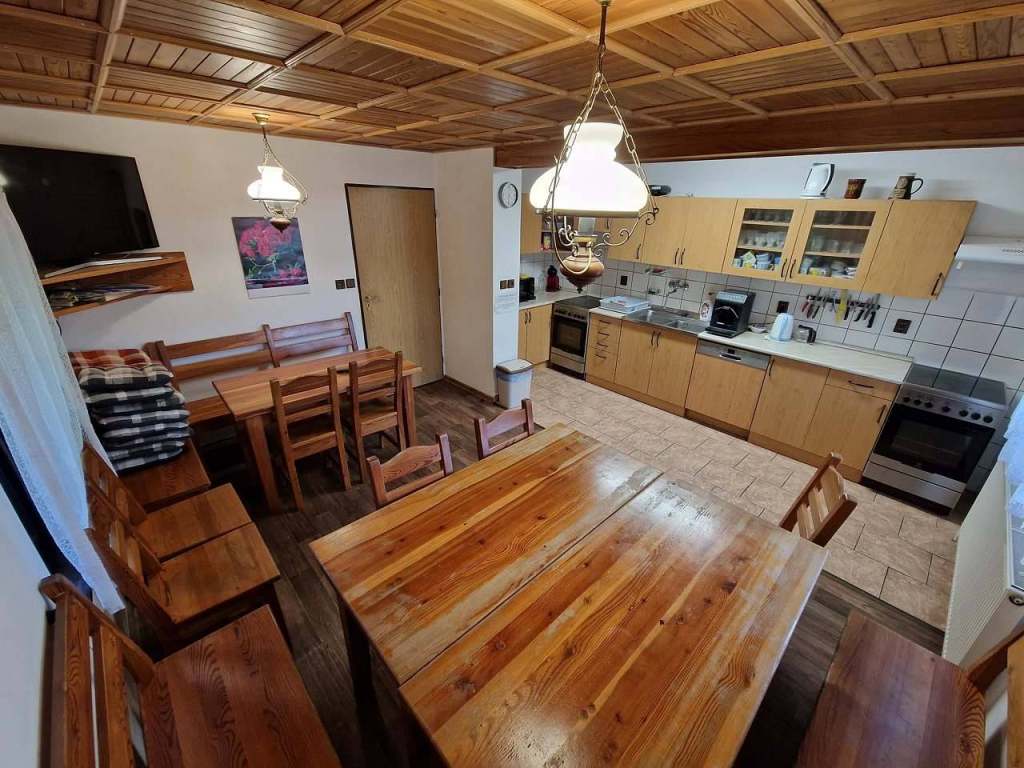 Možnost stravování ve vybavené kuchyni (2 sporáky, myčka, 2x topinkovač, kávovar Krups na zrnka, kávovar na kapsle DOLCE GUSTO, toustovač, nádobí, pekáče, velké a malé hrnce, pánve, příbory, nože, talíře, utěrky, sklo,.. ).
