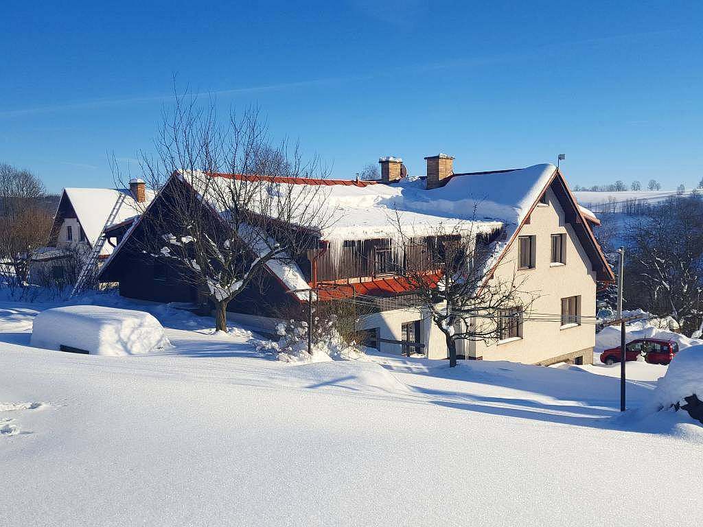 Pronajímáme uzavřené 1.patro v rodinném domě. Skiareály: Kamenec - (300 metrů od domu do mírného kopce k horní části vleku, zpět je možné přijet v případě dobrých sněhových podmínek na lyžích až k domu - Jablonec nad Jizerou), Šachty, Petruškovy vrcha - 2 km autem (Vysoké nad Jizerou). Ve skiareálu Kamenec naleznete půjčovnu lyží, měřený slalom. Součástí areálu Šachty je také dětský park, půjčovny lyžařského vybavení, lyžařská škola. Pro běžkaře je zde více než 35 km značených a upravovaných běžeckých tratí. Sáňkovat či bobovat, případně stavět sněhuláky je možné přímo u domu na loukách. Uzamykatelná garáž na lyže, sáňky a boby. Další lyžařské vleky jsou například v Pasekách nad Jizerou (7 km), Rokytnici nad Jizerou (9 km) nebo v Harrachově (17 km).