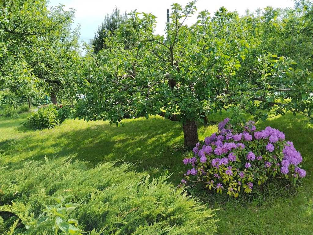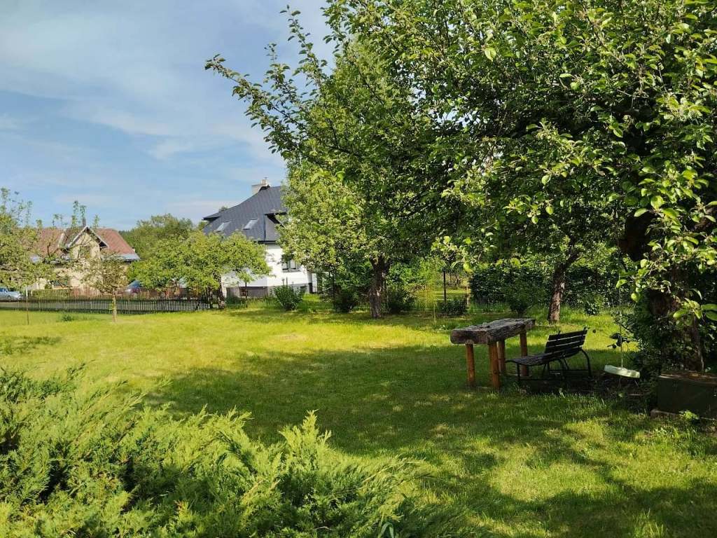 Na zahradě najdete ohniště, zásobu dřeva, lavičky, houpačku pro děti, posekaný trávník. Další vybavení promýšlíme a chystáme.