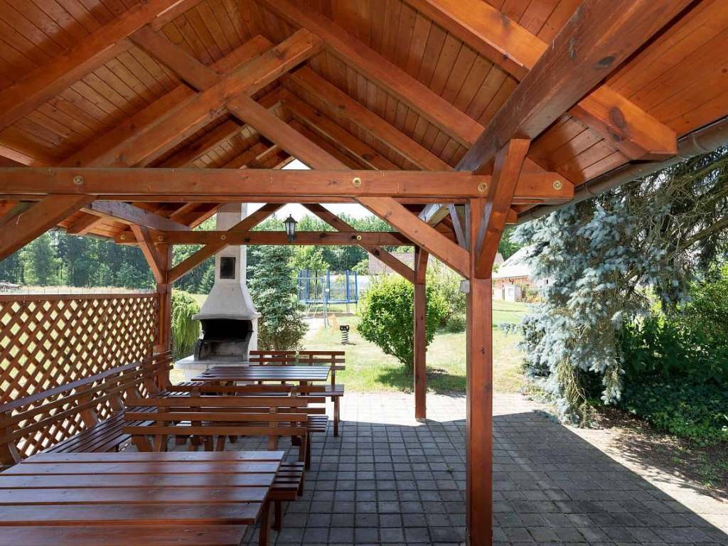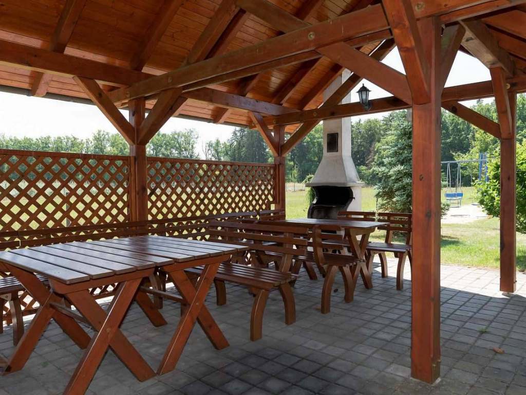 Venkovní kryté posezení, dětské hřiště, stolní tenis.