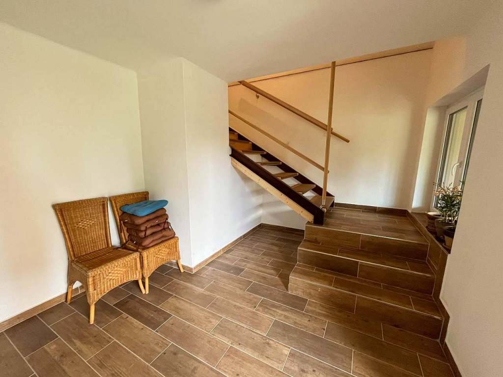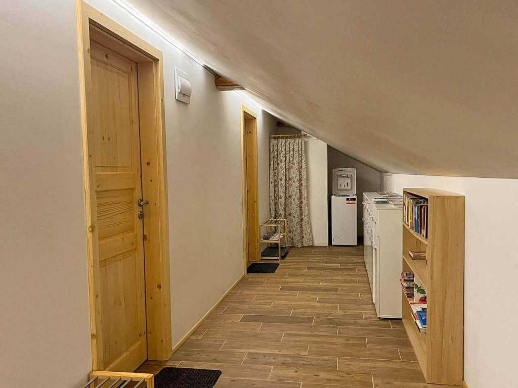 Ve volném prostoru u schodiště máte možnost si odložit si své věci, které do apartmánu nesmí, například kola, lyže nebo jakékoliv sportovní vybavení, které jste si sebou vzali.