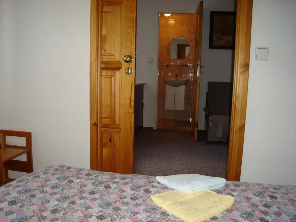 Pokoj 1 (2+1) - 2 místnosti - 1 ložnice s manželskou postelí, 2 místnost obývací pokoj s rozkládací pohovkou. Vlastní koupelna - sprchový kout.