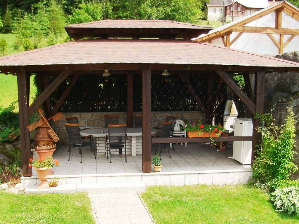 Venkovní posezení s grilem je k dispozici všem hostům.