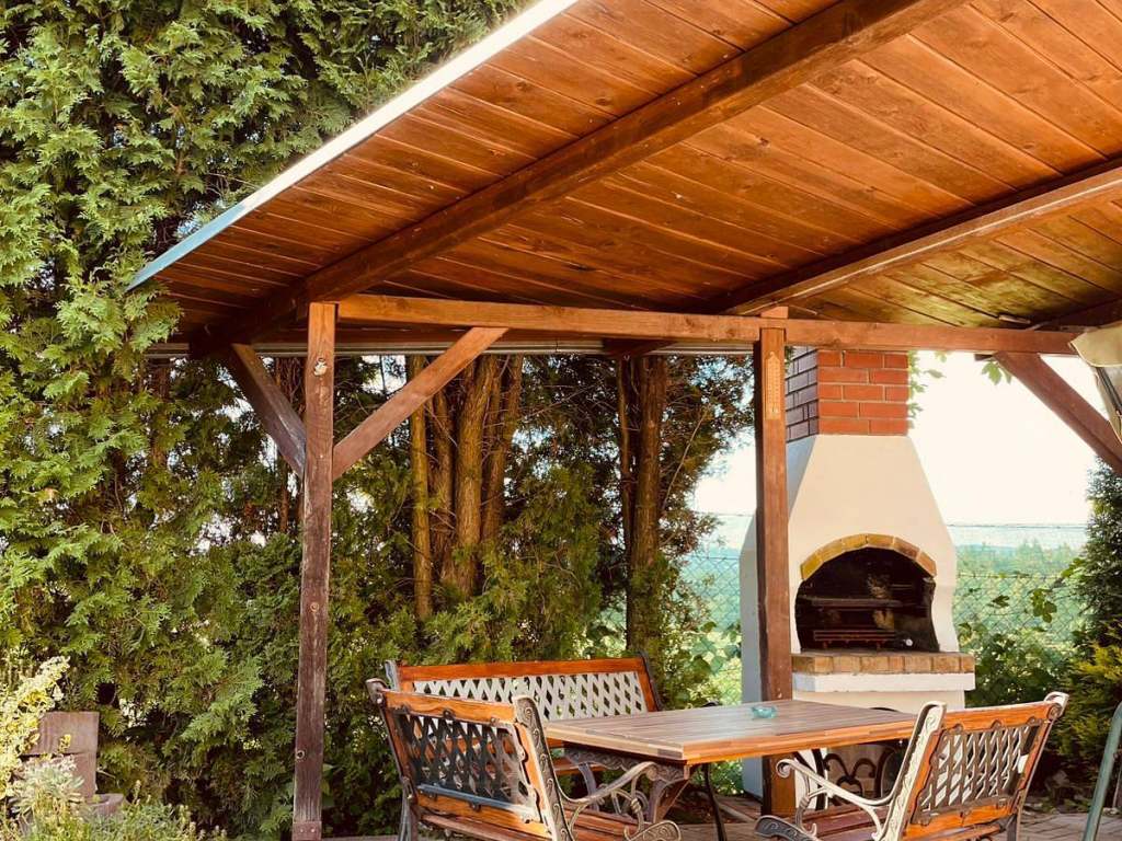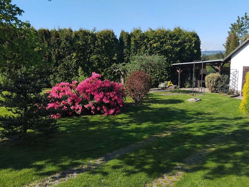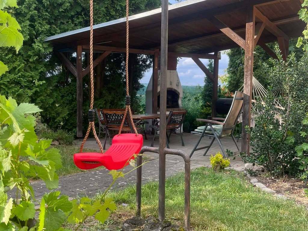 I na zahradě budete mít své soukromí. Zahrada je oplocená s venkovním posezením pod pergolou s krbem a grilem, houpací sítí, kde můžete relaxovat, pro děti trampolína, houpačka. V sezóně je pro vás připravený bazén.
