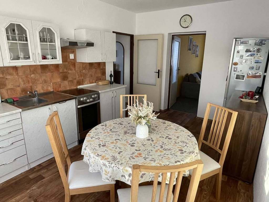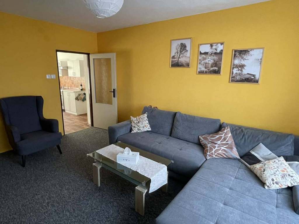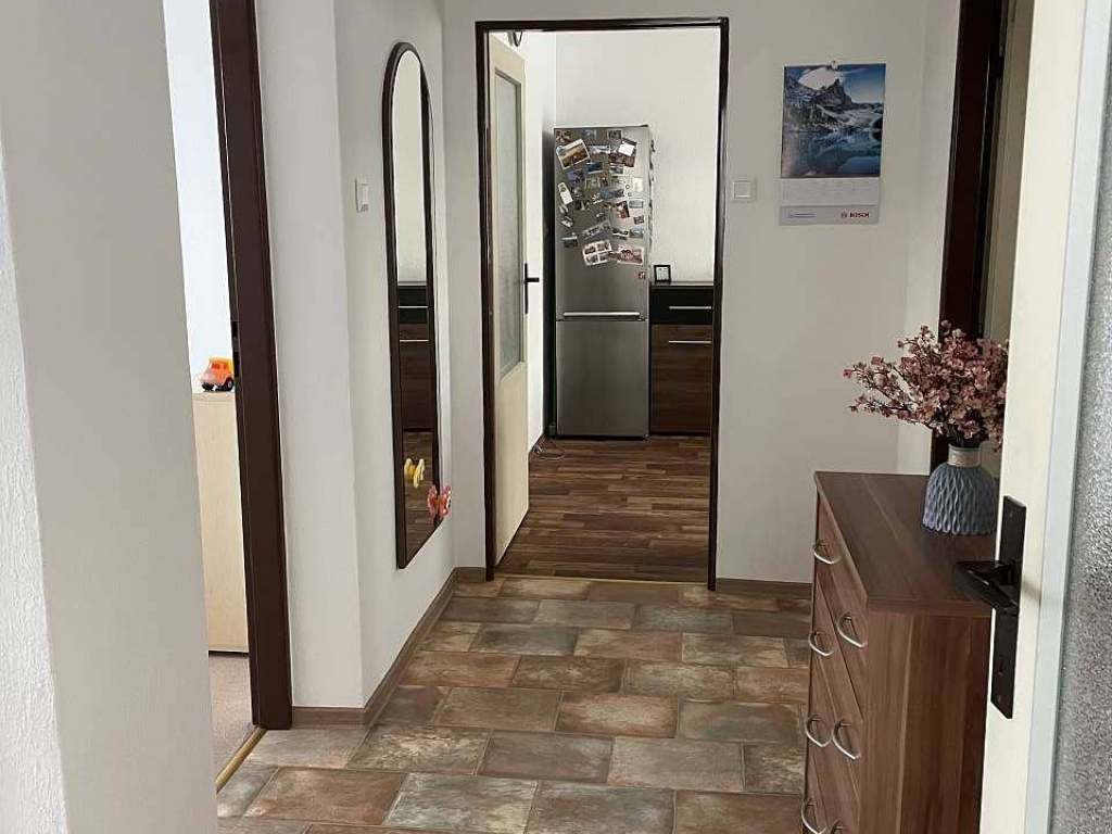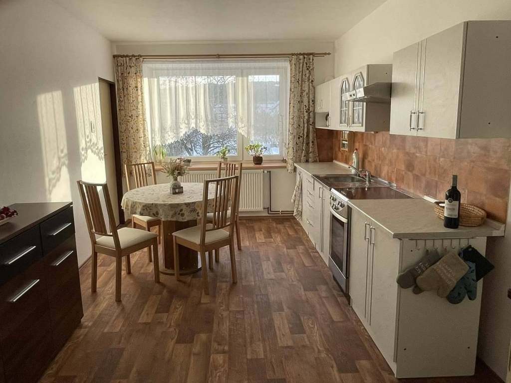 Z chodby je přístup do dvou ložnic s manželskými postelemi. Proti ložnicím je nově zrekonstruovaná moderní koupelna se sprchovým koutem a toaletou. Z chodby se dále dostanete do kuchyně s jídelním stolem. Kuchyň je průchozí a dostanete se z ní do obývacího pokoje s rozkládacím gaučem a televizí s internetovým připojením.