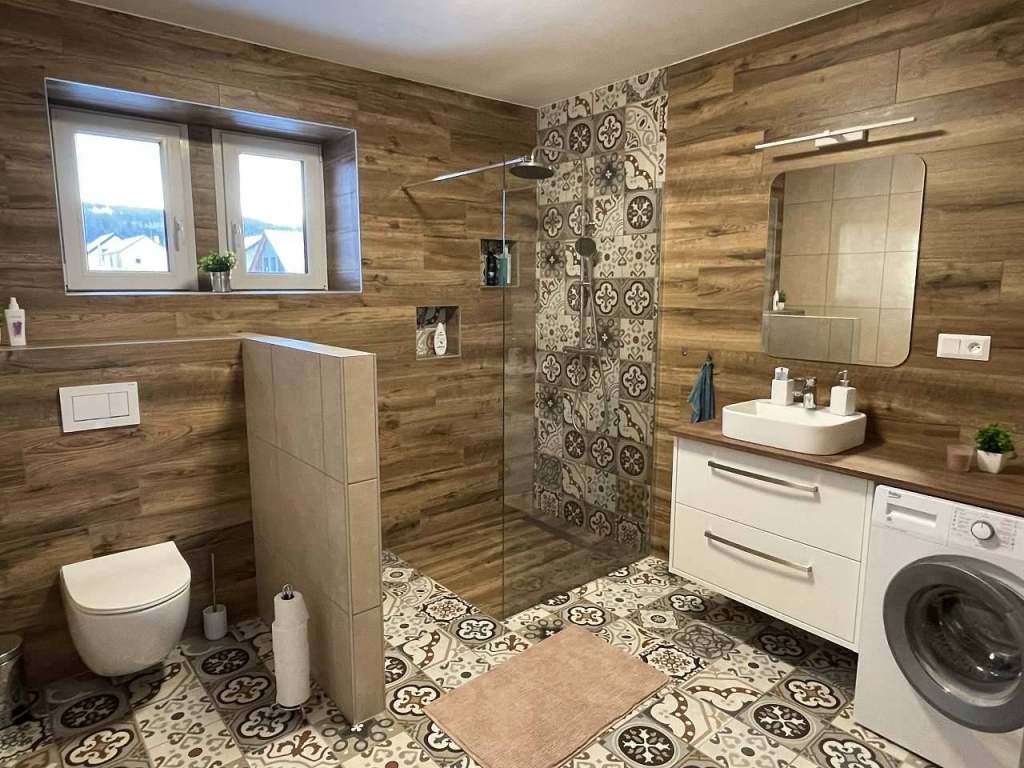 - Sociální zařízení: sprchový kout, pračka
