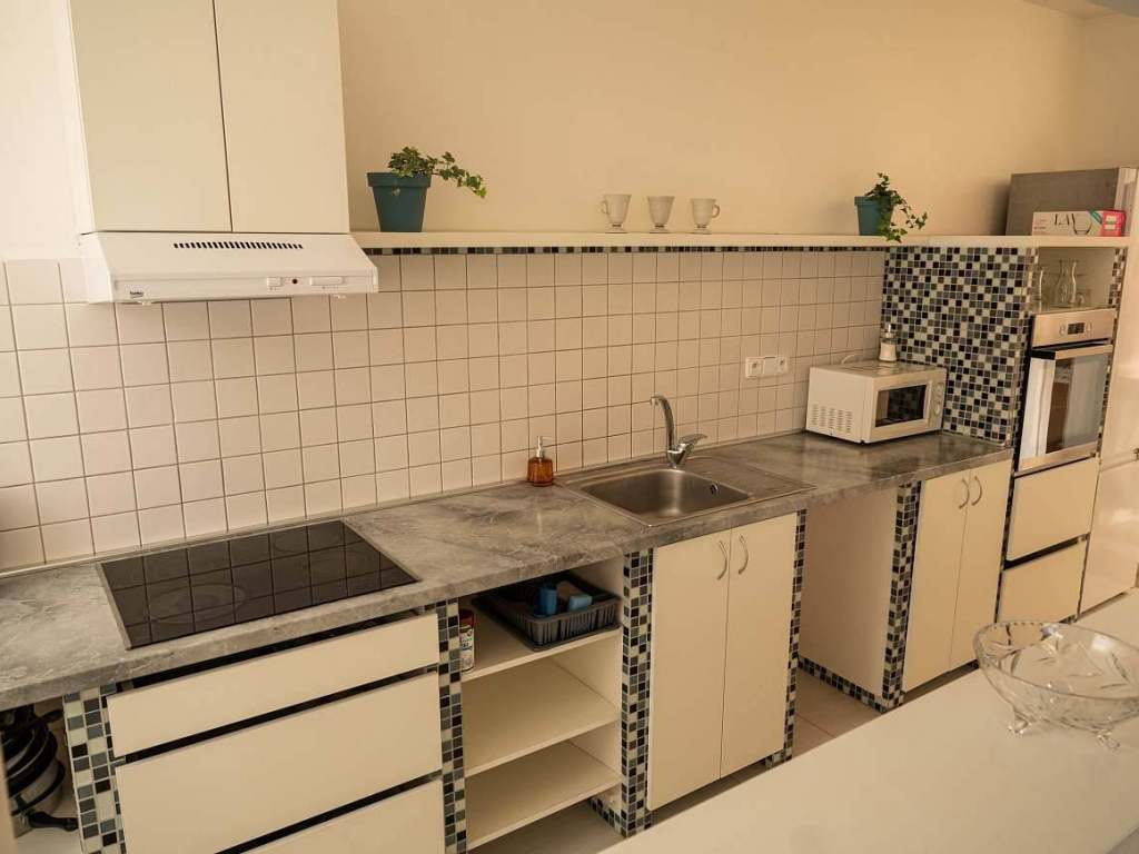 Apartmán se skládá ze 2 ložnic, kuchyně a koupelny se sprchovacím koutem, umyvadlem a toaletou. Kuchyně je vybavená novou kuchyňskou linkou, jídelním stolem se židlemi, el. spotřebiči - varná deska, pečící trouba, mikrovlnná trouba, varná konvice, překapávač, sendvičovač s vaflovačem, lednice, myčka nádobí, ruční mixér. První ložnice disponuje manželskou postelí, komodou, křeslem a televizorem. V druhé ložnici jsou 2 lůžka a odkládací prostor pro oděvy.