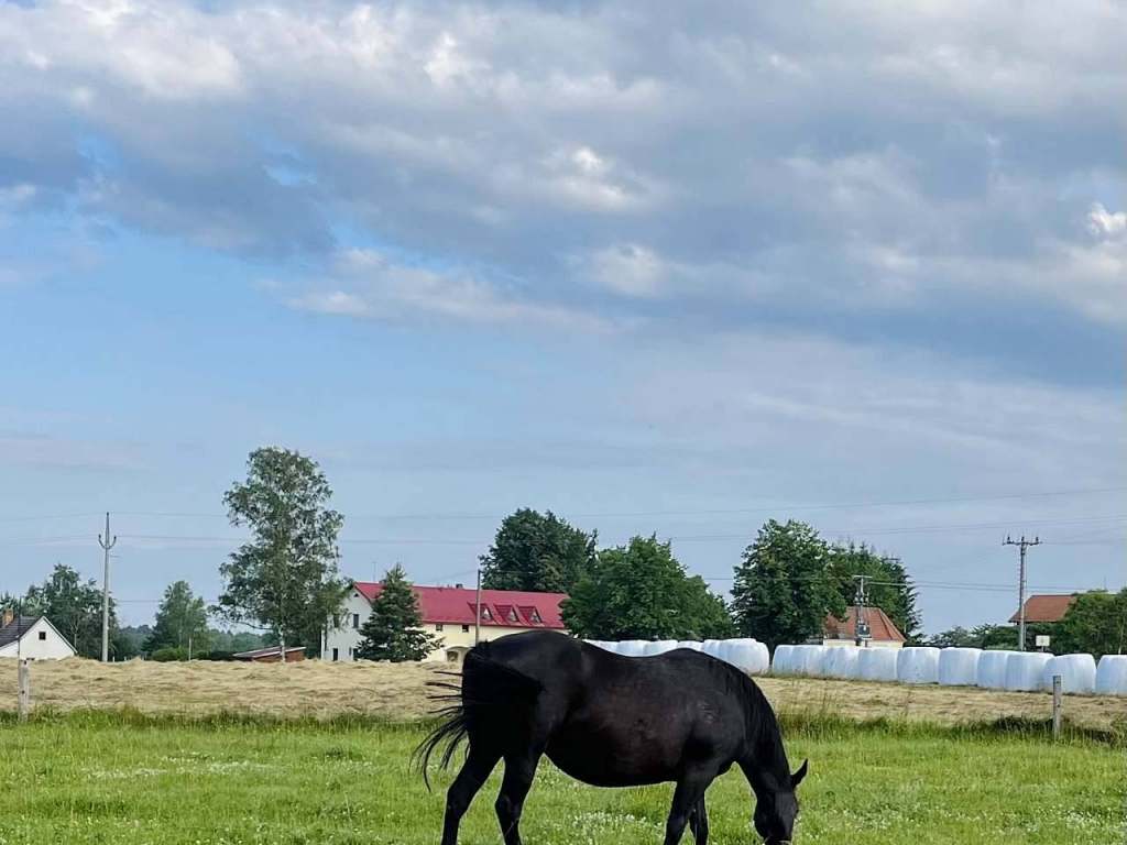 Kolem domu máme naší klisnu Rozárku, kterou je možné si pohladit a dá jí jablíčko či mrkev. Také máme kolem domu i stádo kraviček. U nás najdete klid, pohodlí, relaxaci a čerstvý vzduch. Vstup do apartmánu je z vnitrobloku domu. Ve vnitrobloku s námi žijí tři chundelaté kočičky.