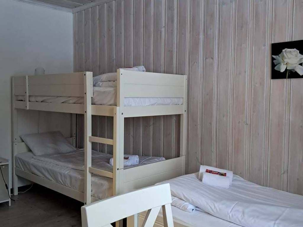 Apartmán Hammarström - na 72 m2 se nachází dva dvoulůžkové a jeden čtyřlůžkový pokoj s patrovými postelemi. Vzhledem k nosnosti horních paland je tento čtyřlůžkový pokoj vhodný pro dva dospělé a dvě děti nebo pro čtyři děti. V pokojích jsou úložné prostory a noční stolky. Pro všechny pokoje je k dispozici společná kuchyňka, plně vybavená vším, co je potřeba k zajištění vlastního stravování i při delších pobytech. Najdete zde lednici s mrazící přihrádkou, dvouplotýnkový sporák, troubu, myčku, rychlovarnou konvici, kávovar na překapávanou kávu, mikrovlnku, toaster a samozřejmě veškeré nádobí a kuchyňské náčiní. Kuchyňský kout je součástí společné místnosti s jídelním stolem, pohovkou a televizí. Pro případ horšího počasí nebo pokud se vám bude chtít jen tak lenošit, u nás máte k dispozici několik knih a deskovek. K dispozici je také pračka a sušák na prádlo. V celém objektu je dostupná bezplatná Wi - Fi.