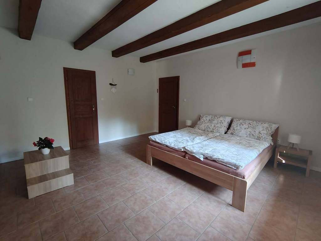 Apartmán Lucie: Prostorný apartmán až pro 5 osob. Najdete tu ložnici s manželskou postelí a palandou.