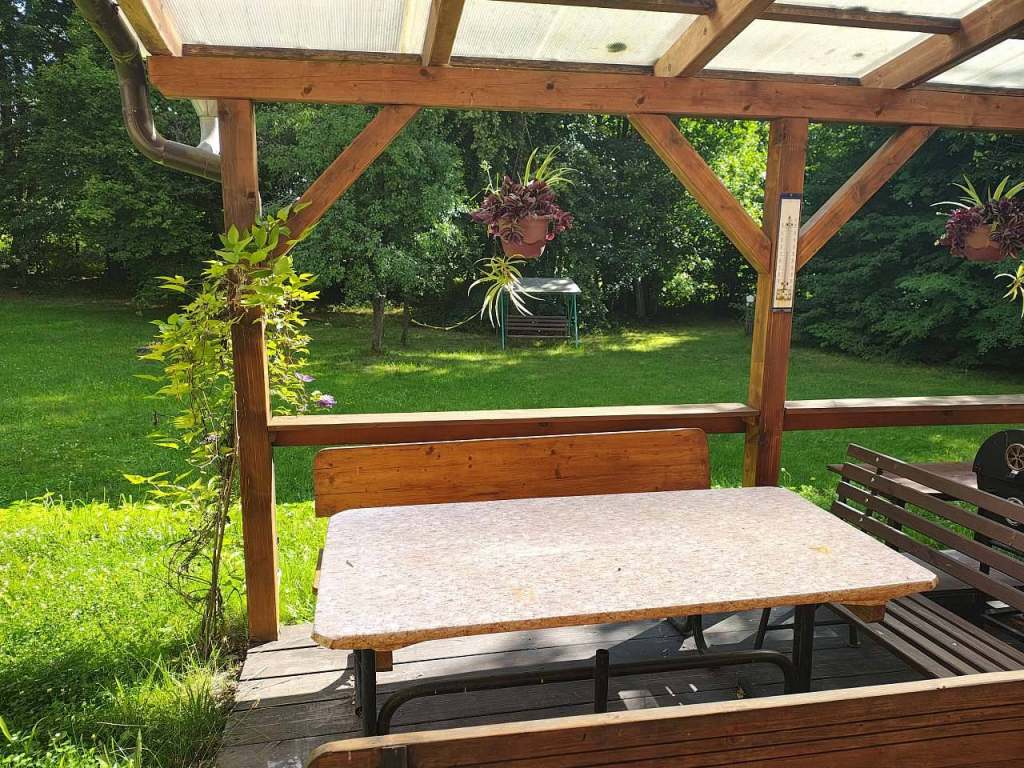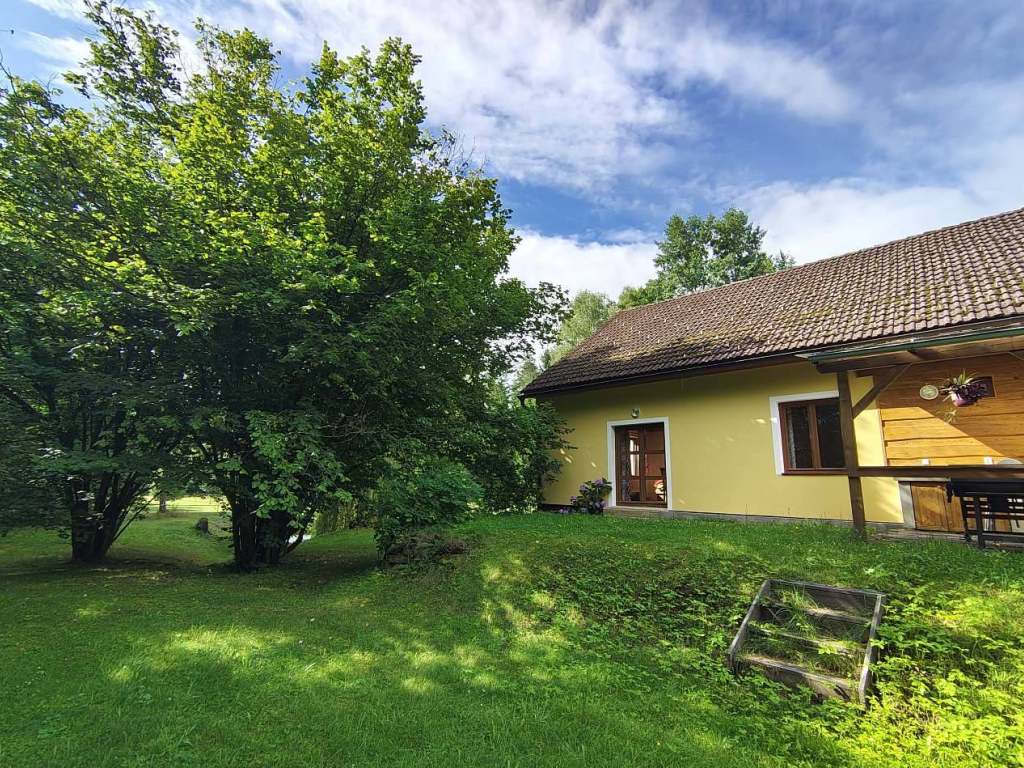 Plně vybavená kuchyň: varná deska, lednice, rychlovarná konvice, mikrovlnná trouba, nádobí, příbory, hrnce, pánev. Wi‑Fi připojení. TV. Povlečení, ručníky, základní toaletní potřeby. Dětská postýlka (na požádání). Ohniště. Zahrada s možností posezení i her. Parkování přímo u objektu.