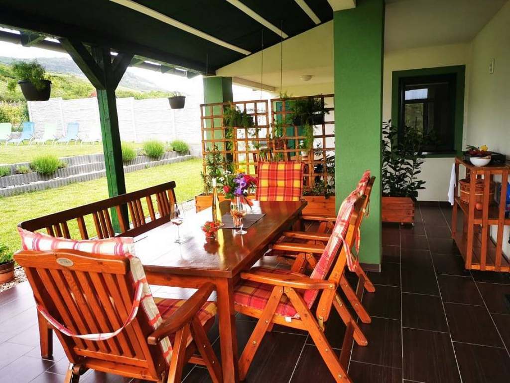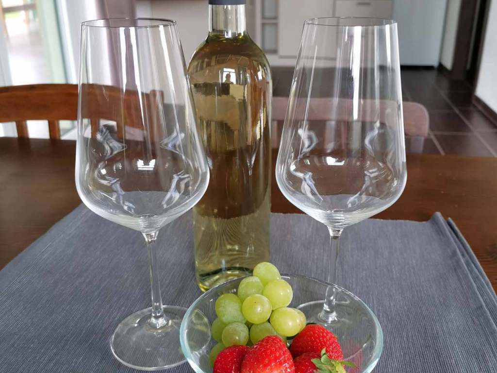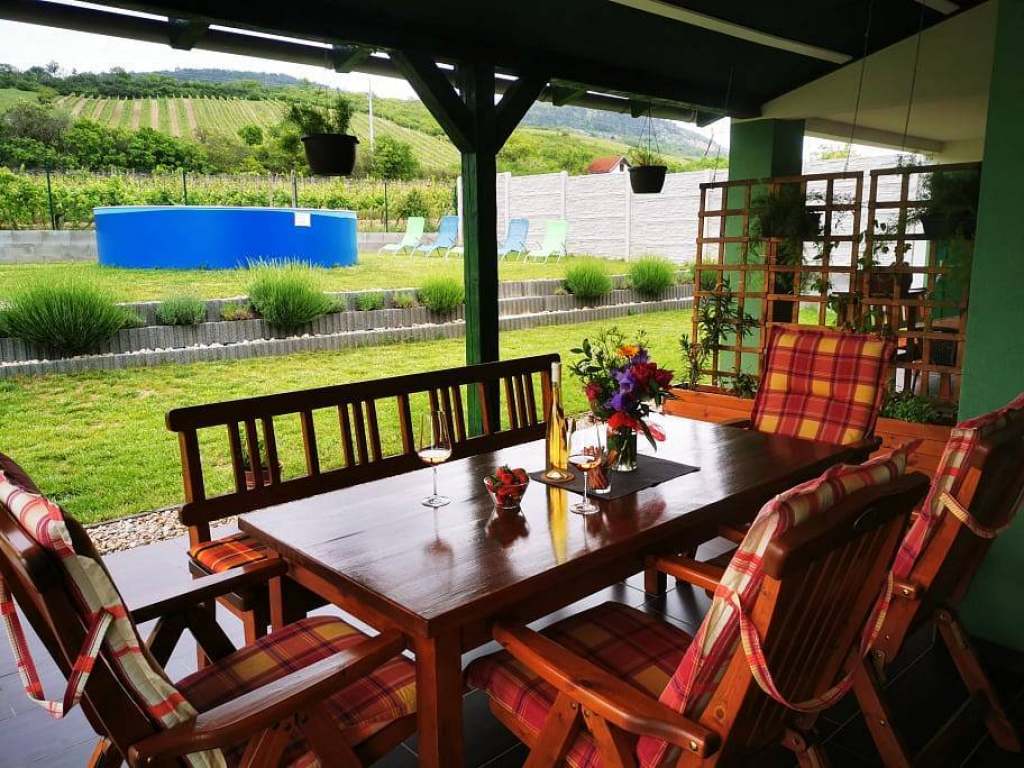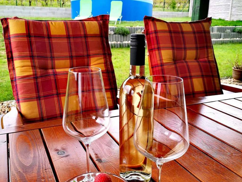 Na zahradě můžete využít posezení na terase s krásným výhledem do přírody a vinice, kde si můžete ugrilovat různé dobroty. Gril máme jak elektrický, tak i na dřevěné uhlí. Součástí rodinného domu je bazén.