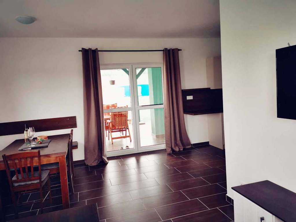 V přízemí apartmánu se nachází kuchyň, jídelní kout, obývák, koupelna s WC a technická místnost.