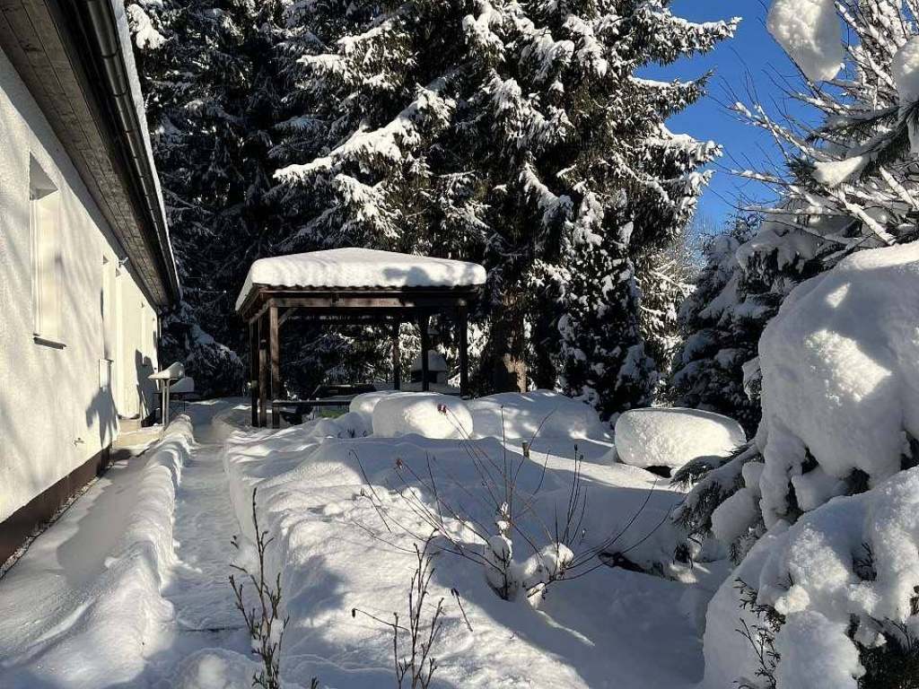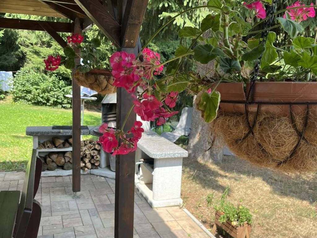 Dům disponuje krásnou zahradou, s prostorným venkovním krytým posezením, vyhrazeným místem pro bezpečné parkování více aut.