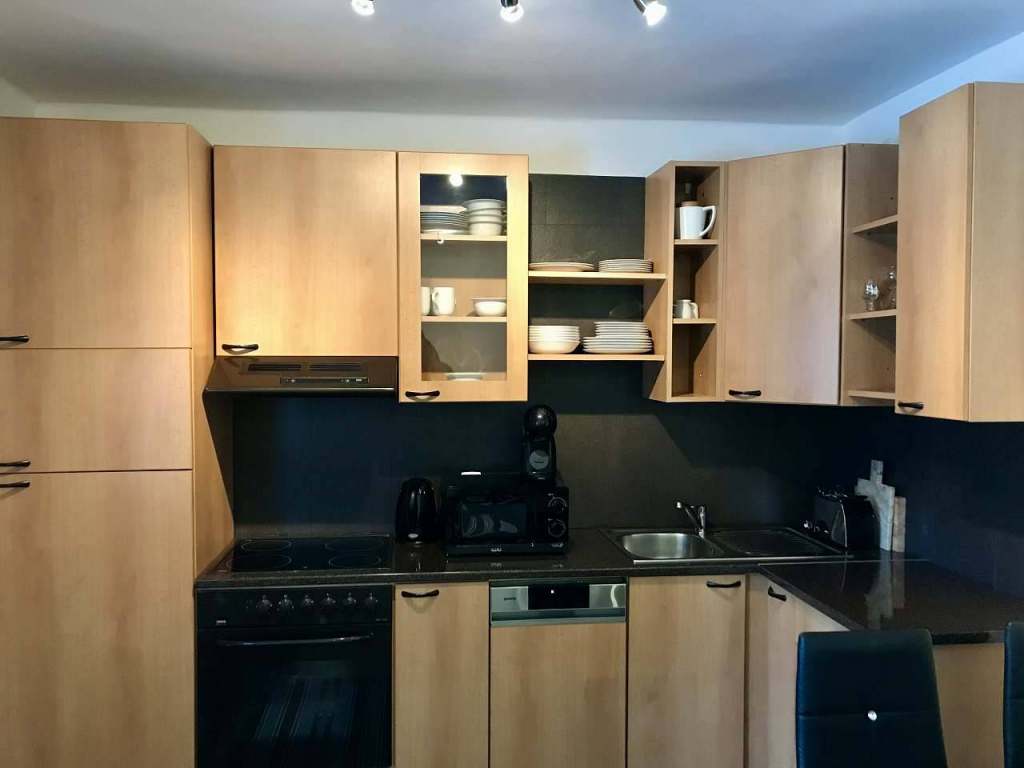 Kuchyně poskytuje veškerý komfort pro přípravu jídel, vybavena myčkou nádobí, elektrickou varnou deskou a elektrickou troubou, mikrovlnou troubou.