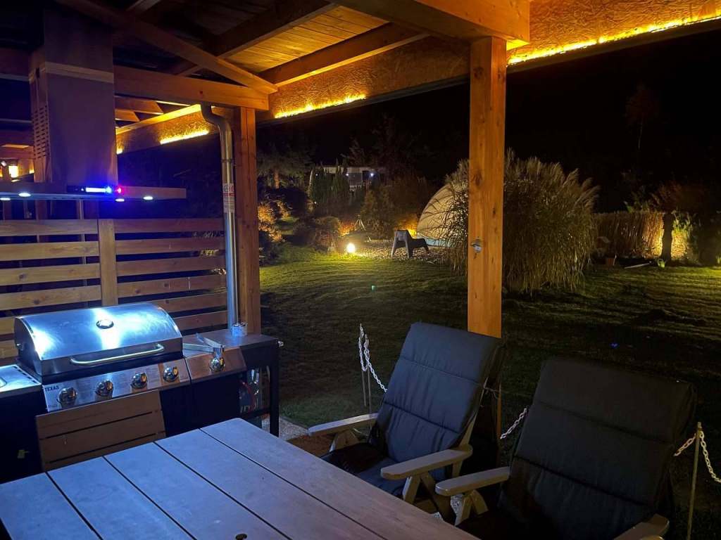 Celková kapacita je 15 - 20 osob včetně dětí. Vilu Annu je možné objednat jako celý objekt nebo zvlášť po jednotlivých apartmánech, které jsou též samostatně na portálu e - chalupy. cz K dispozici je udržovaná osvětlená zahrada s temperovanou společenskou místností s možností promítání, luxusní zahradní kuchyň s možností grilování, posezení u rybníku s ohništěm, krytý dětský koutek s lezící stěnou, pro děti dále dětské hřiště s pískovištěm a skluzavkami, velká trampolína.