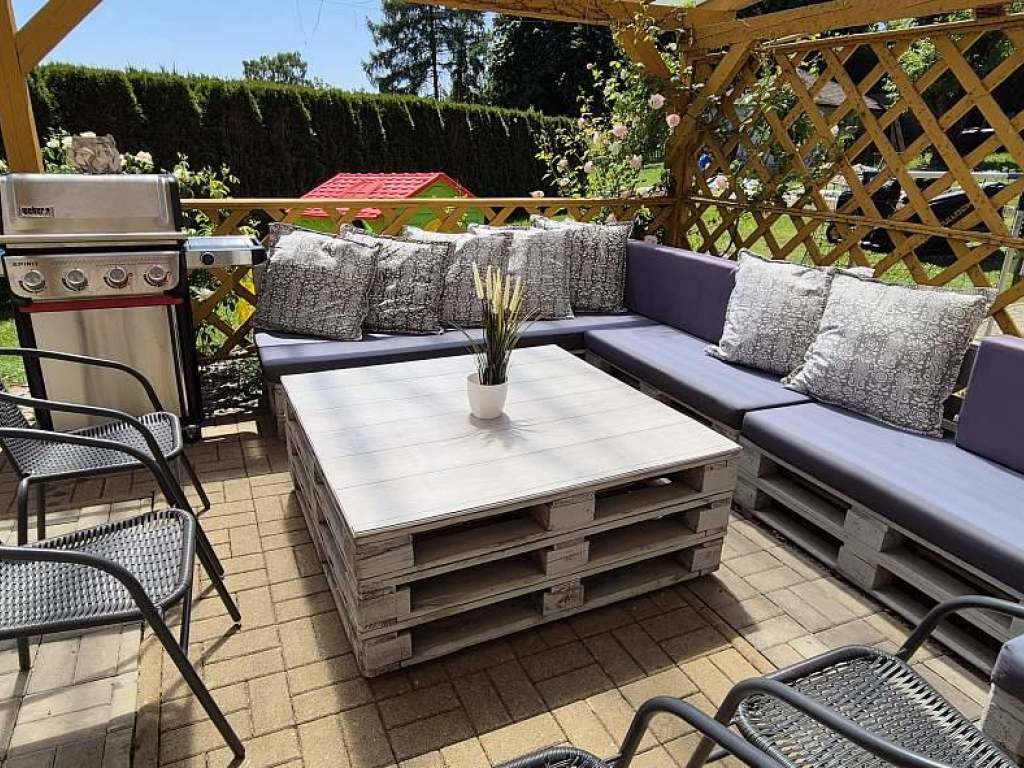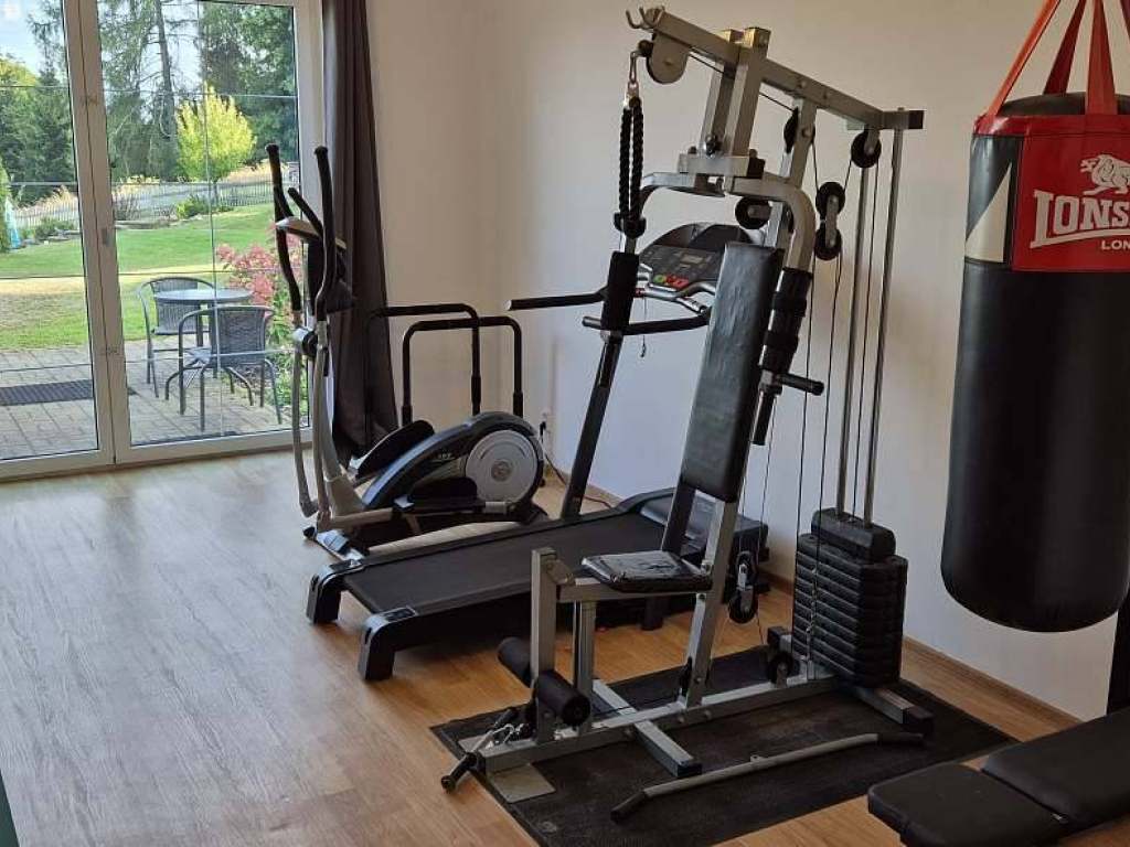 Venkovní vybavení: Venkovní bazén, stolní tenis, petange, bedminton, horký sud s výřivkou pro celoroční použití, hřiště na míč. hry, pergola pro venkovní posezení s kvalitním plynovým grilem, ohniště s možností opékání. Míče a branky k dispozici. Krásné posezení na terasách s výhledy na Jizerky a Krkonoše. Za příplatek možnosti sportovních masáží.