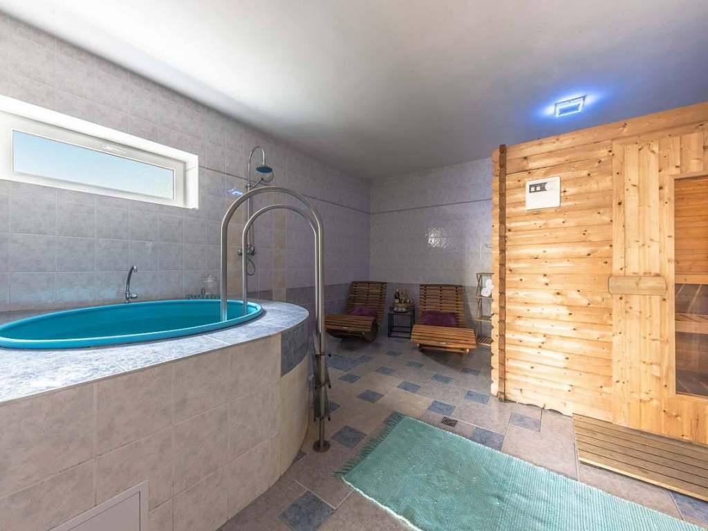 Vnitřní vybaveníí: Pračka, sušička, 3 x myčka, 3 x lednice, 3 x TV, 2 kávovary, ve vile jsou 3 kuchyně, čili několik toustovačů, topinkovačů, rychlovarné konvice, kompresorové výčepní zařízení. Finská sauna s ochlazovacím bazénkem. Ve vile jsou celkem 3 TV. Na jedné TV je nast. náš účet oneplay a netflix, zbylé TV s Vašimi účty. Slušně vybavené fitko.