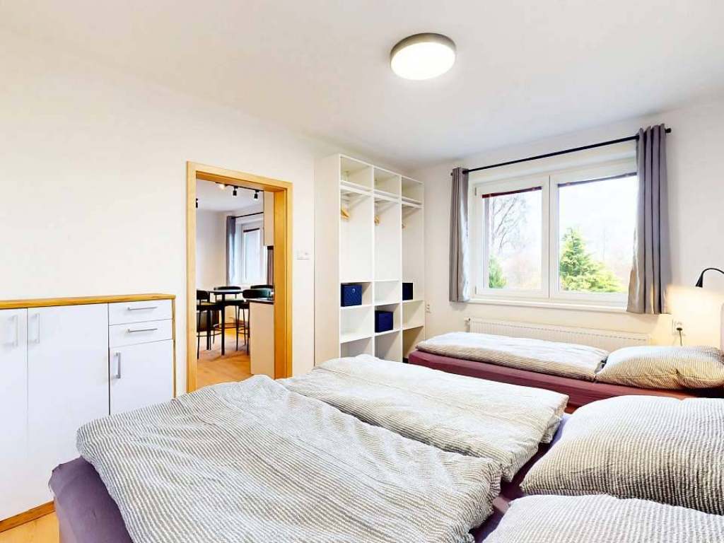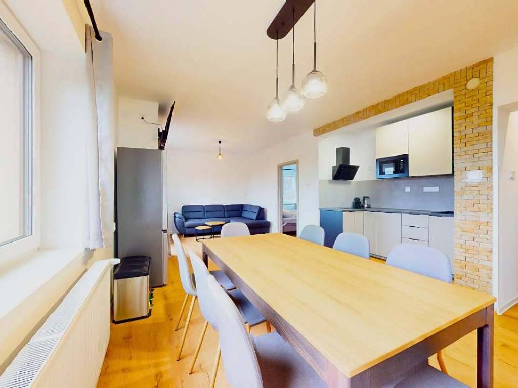Apartmán 3+kk – 5 pevných lůžek, 2 ložnice, 2 koupelny, rozkládací gauč, společenská místnost.