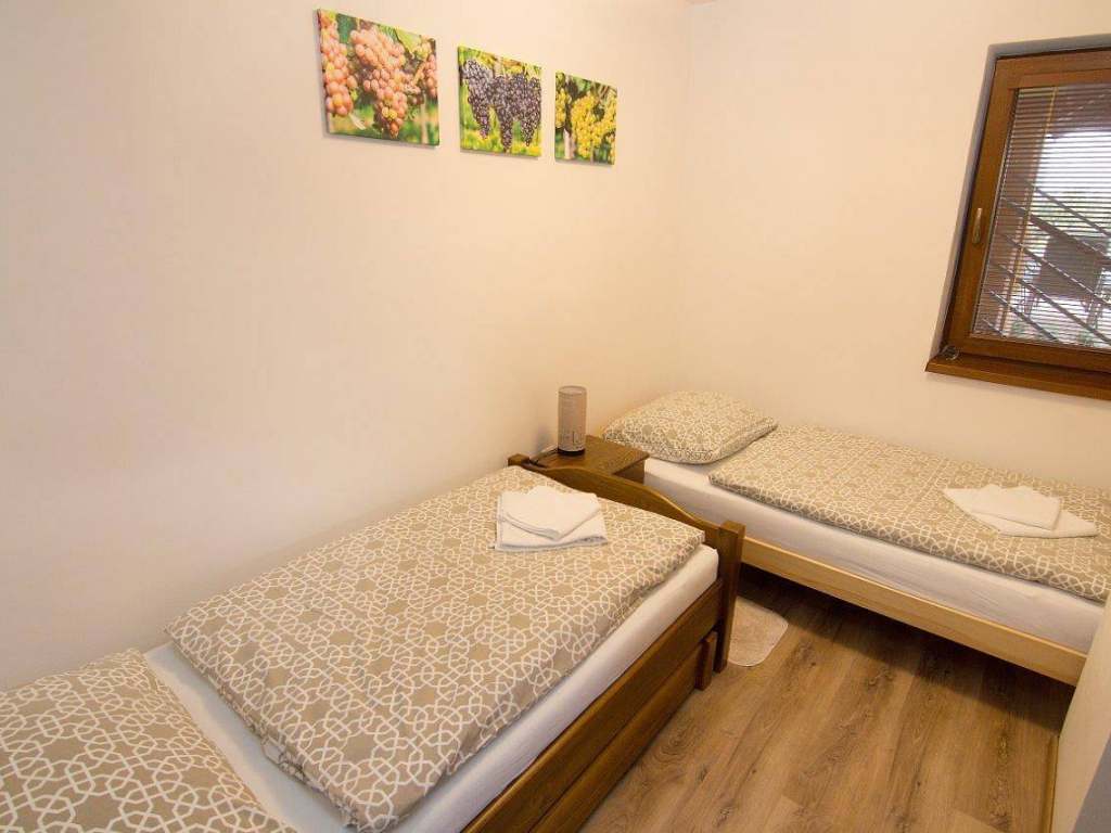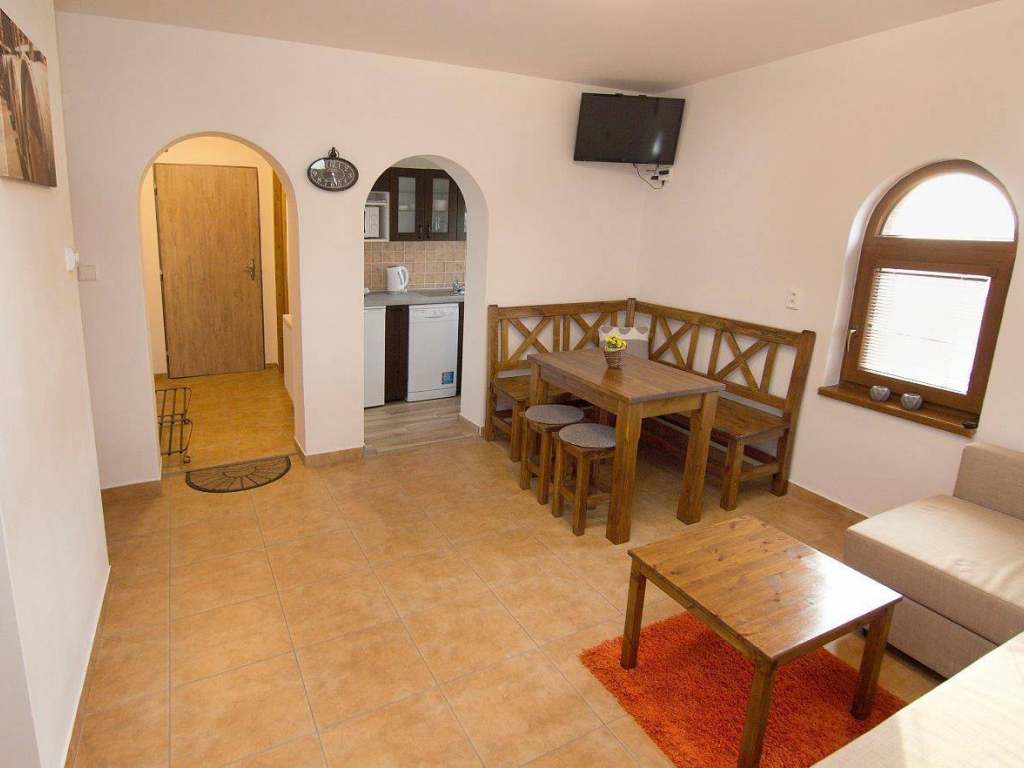 Plně vybavené kuchyňské kouty v apartmánu i pro pokoje (lednička, myčka, mikrovlnka, varná konvice, vařič, toaster, vinotéka), TV, wifi, vinotéka, terasa s grilem, vinný sklípek s posezením.