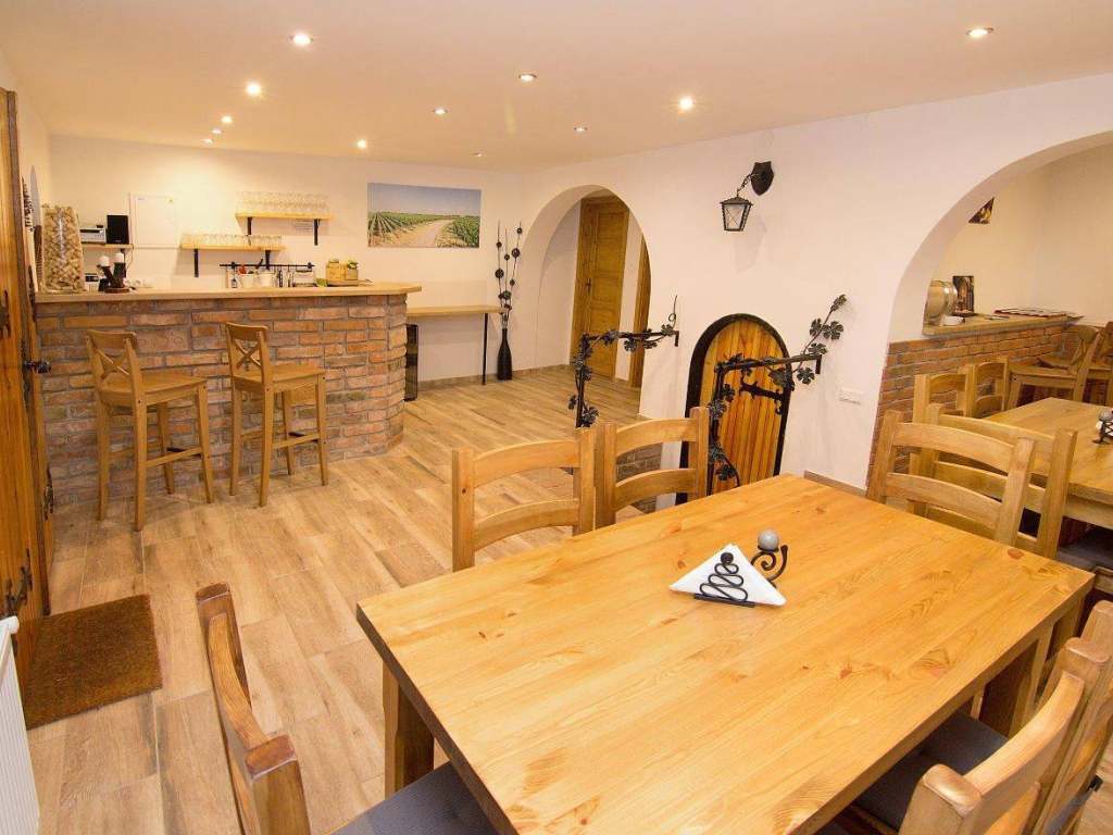 K dispozici jsou tři pokoje a apartmán s celkovou kapacitou 10 lůžek plus tři přistýlky. Vinný sklípek s posezením a krbem, letní terasa s grilem a vybraná vína od místních vinařů.