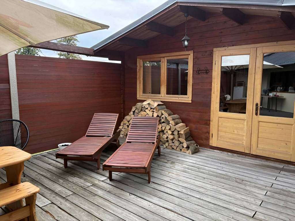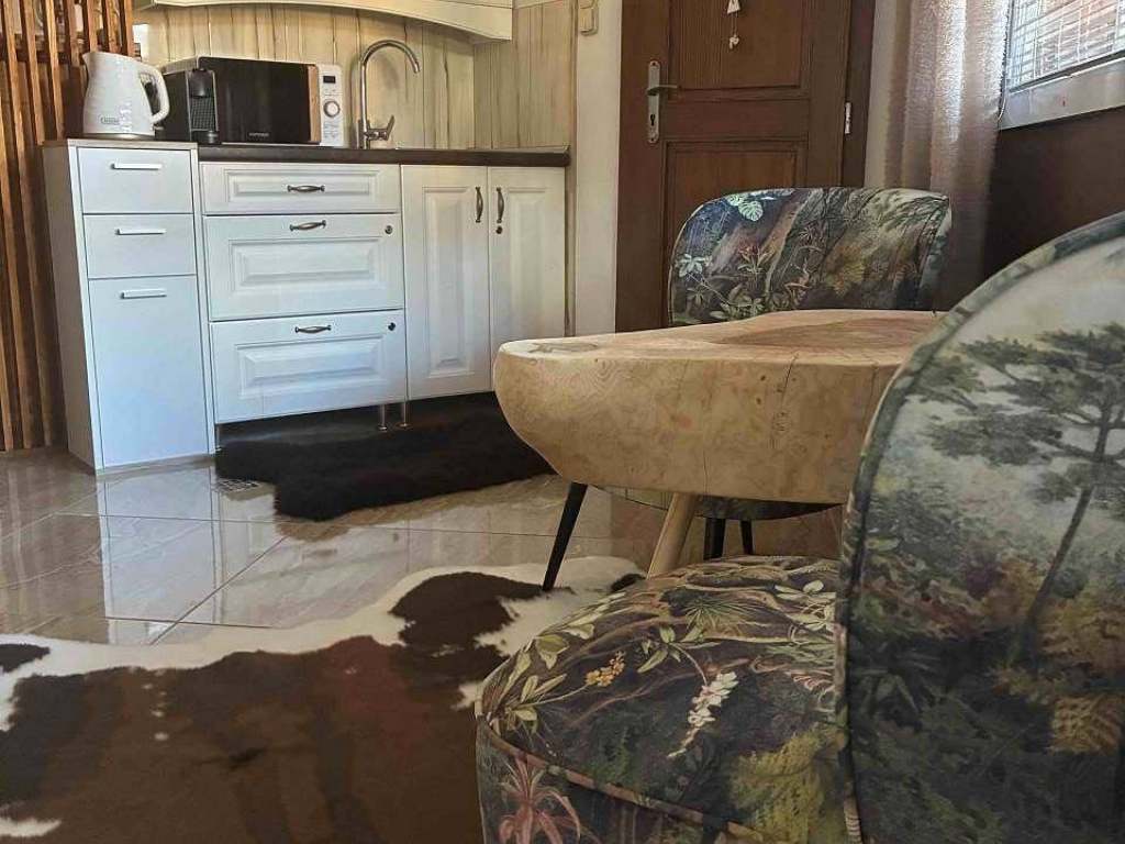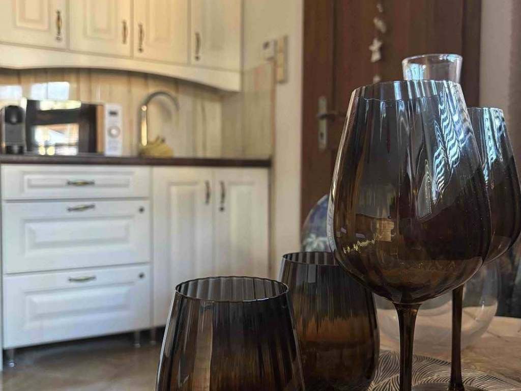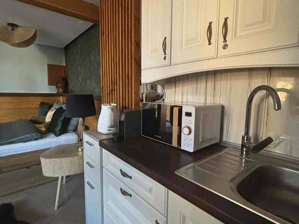 Kuchyňský kout, kde jednoduše si ohřejte jídlo v mikrovlnné troubě, popřípadě na elektrickém, jedno plotýnkovém vařiči. Kávovar s kapslemi na espresso, či cappuccino, a rychlovarná konvice patří k vybavení. Čeká na vás vinotéka s vybranými značkami vinařství, ale i nealkoholickými nápoji za nákupní cenu. Šatna vybavená komodou, tyčí na zavěšení kabátů a podložkou na odložení bot. Na venkovní terase jsou lehátka, posezení s pohodlnými křesly s možností rozevření slunečníku.