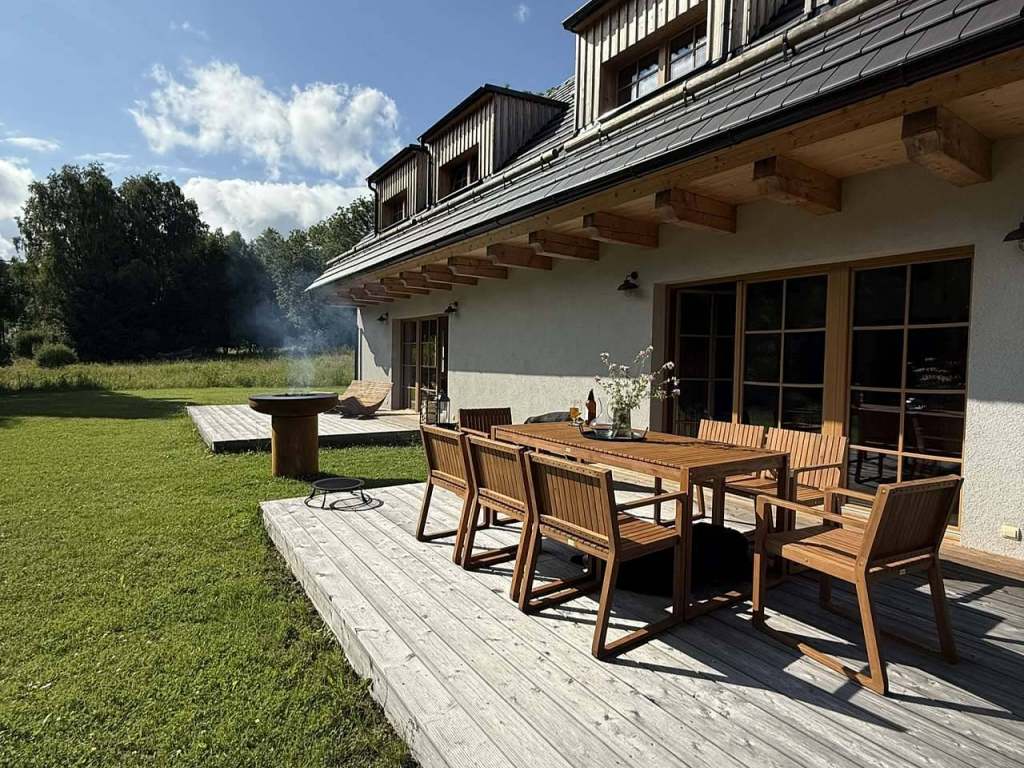 Luxusní chalupa Výtoň 263 u Lipna – klid, komfort a příroda v dokonalé rovnováze. Dopřejte si jedinečný pobyt v nově postavené luxusní chalupě pro až 18 osob, ukryté na samotě u lesa, přesto jen pár minut od břehu Lipna a centra Přední Výtoně. Místo, kde se snoubí naprostý klid, čistá příroda a moderní pohodlí. Chalupa je rozdělena na dva samostatné designové apartmány, každý s vlastní plně vybavenou kuchyní, dvěma koupelnami, třemi ložnicemi, útulným podkrovím a přímým vstupem na terasu se zahradou. Každý apartmán má navíc privátní saunu, stylový interiér s prvky dřeva a jeden z nich i krbová kamna, druhý pak relaxační čtecí kout s TV. Chalupa je ideální pro rodiny, skupiny přátel i menší firemní akce či komorní svatební obřady. Samozřejmostí je Wi - Fi připojení, terasa s grilem, kvalitní kávovar, luxusní lůžkoviny a dostatek soukromí pro všechny hosty. Parkování je k dispozici přímo u objektu. V okolí najdete množství možností pro turistiku, cyklistiku, vodní sporty, běžky, lyžování i relaxaci – od Lipenské přehrady přes stezku korunami stromů až po Šumavu.
