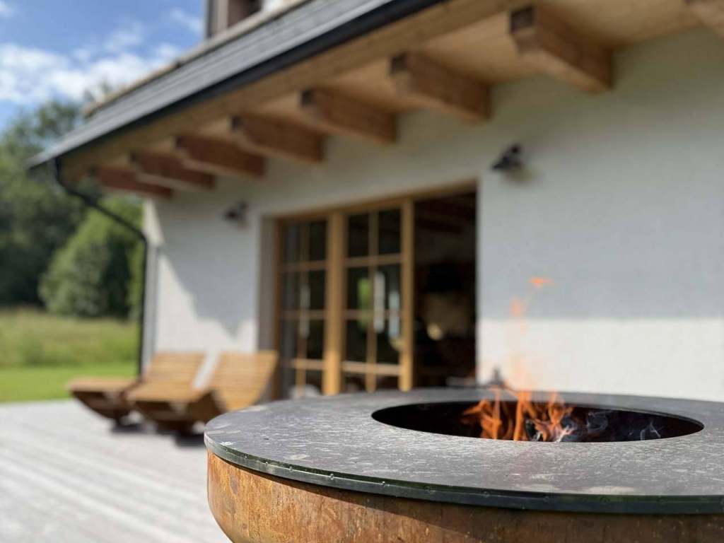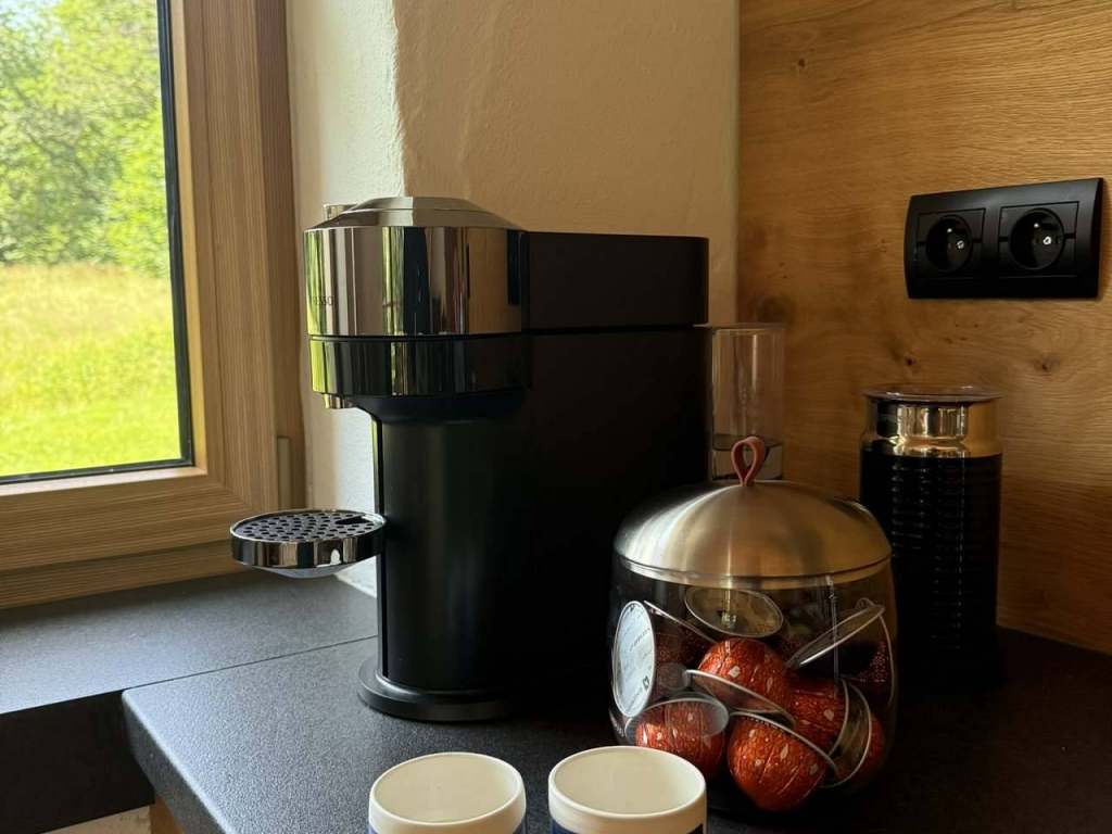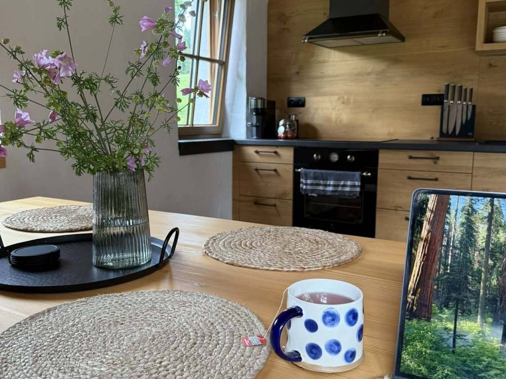 Kompletně vybavená kuchyň se spotřebiči (trouba, myčka, varná deska, digestoř, varná konvice a kávovar Nespresso) a nádobím (sklenice, hrnce, pánve - prostě vše, co budete potřebovat). Vysokorychlostní internet, venkovní terasy s posezením a lehátky, venkovní gril Bonfeu. K dispozici dvě finské sauny s župany a osuškami pro hosty - 30 minut zdarma v rámci pobytu, pak s cenou 250Kč / 30min. Televize ve společenské místnosti s účtem Netflix - zdarma. Nabíječka na elektromobil 11kWh za poplatek 6Kč / kWh.
