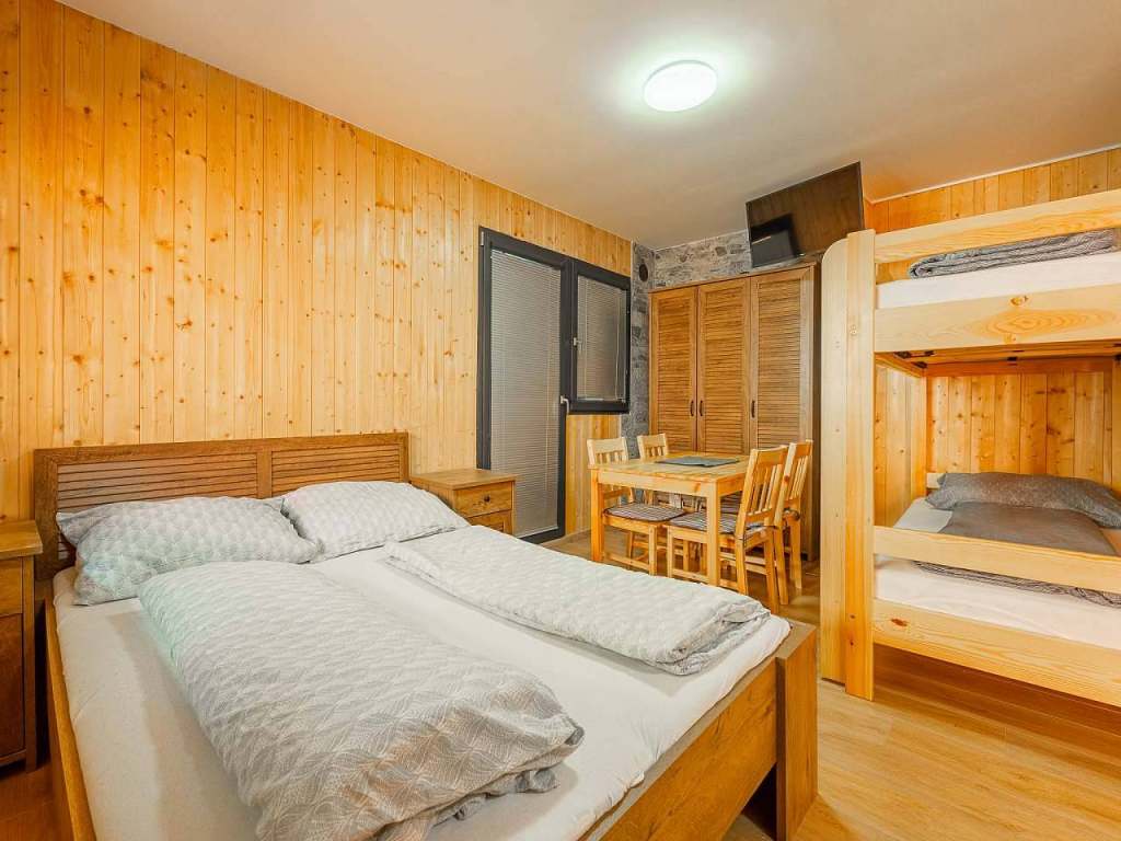 1x APARTMÁN 1+kk = kapacita max 4osoby, kuchyňka, sprchový kout, umyvadlo, wc, manželská postel, patrová postel, police na oděvy.