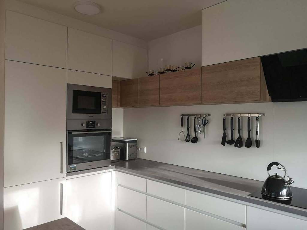 Plně vybavená kuchyně sousedící s obývacím pokojem. Kromě základních spotřebičů je vybavena: Automatickým kávovarem De’longhi a varnou konvicí, Myčkou nádobí, vinotékou, domácí pekárnou, Digitální kuchyňskou váhou a ručním mixérem, Dětskou jídelní stoličkou a dětským plastovým nádobím, Toustovačem a domácí pekárnou.