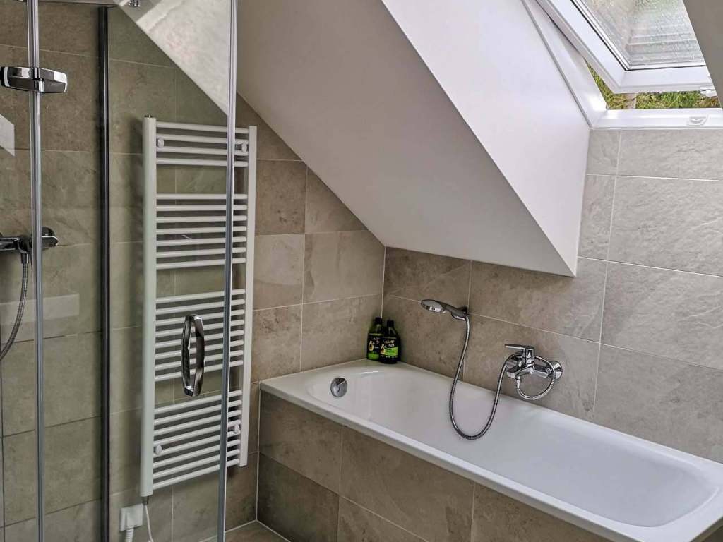 - Sociální zařízení: sprchový kout, vana, pračka